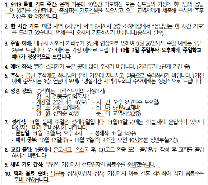 9월19일 교회소식
